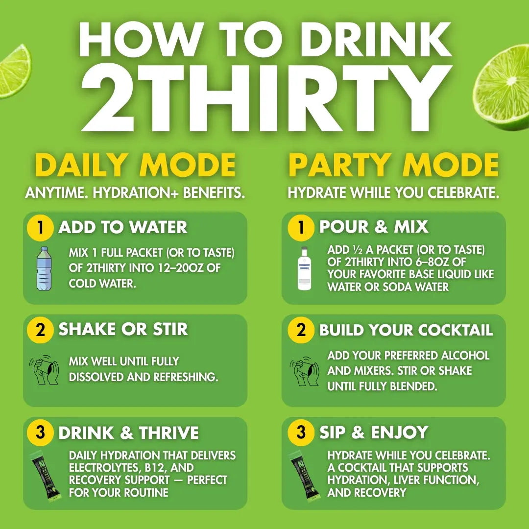 Hydration isn’t boring water with a side of sugar anymore. 2THIRTY brings the energy, the immunity, and the recovery—so you can hit the gym hard, stay out late, and wake up ready for whatever’s next.